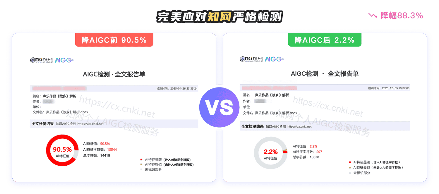 采用国际最先进的AI语言大模型,智能化程度高、学科覆盖度广、性能出色。深度适配知网、维普、万方、格子达、PaperYY、大雅、PaperPass、Turnitin、朱雀等检测平台。